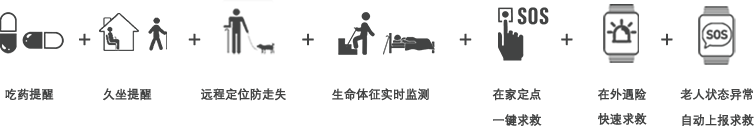 智慧養(yǎng)老系統(tǒng)具備吃藥提醒、久坐提醒、遠程定位走失、生命體征實時監(jiān)測、在家定點一鍵求救、在外遇險快速求救,老人狀態(tài)異常自動上報求救等貼心功能,考慮到老人每一處的需求。