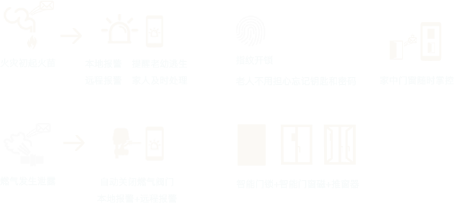 智慧養(yǎng)老系統(tǒng)配備的智能傳感,煙感,氣感,智能門鎖,智能門磁等一系列的設備完善了每個區(qū)域的安防消防,盡可能地避免了因老人健忘或行動不變導致的疏忽造成的損失,更好地保護了老人生命及財產安全。