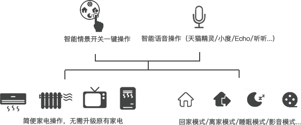 智慧養(yǎng)老系統(tǒng)兩大控制方式,智能情景開關一鍵式操作,智能語音操作,即可連接各種設備,無需升級原有家電,為老年人提供簡單便捷的控制方式,還可輕松觸發(fā)各種情景模式。